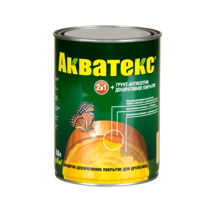 Акватекс бесцветный 0,8л - защитно-декоративное покрытие для древесины. Защита древесины от биопоражений (гниения, плесени, грибка, синевы), от УФ-излучения (потемнения, выгорания), от атмосферных воздействий, декоративная отделка под ценные породы дерева.
