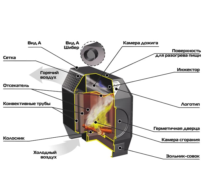 Преимущества отопительной печи Ермак-Термо 300-С: